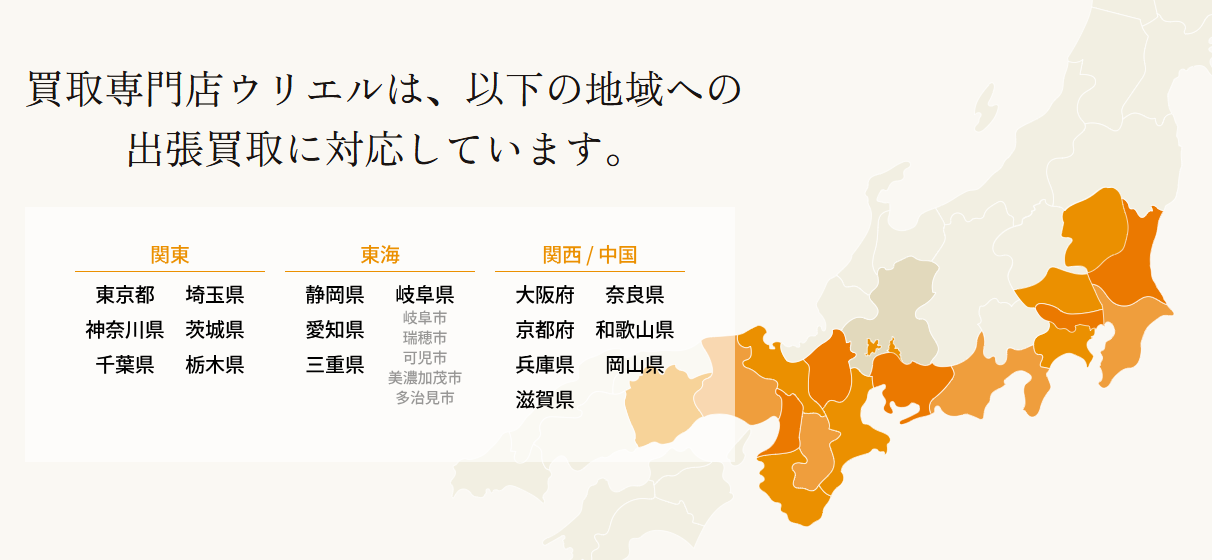 ウリエルは、一部の地域に限定した訪問買取を展開しています。